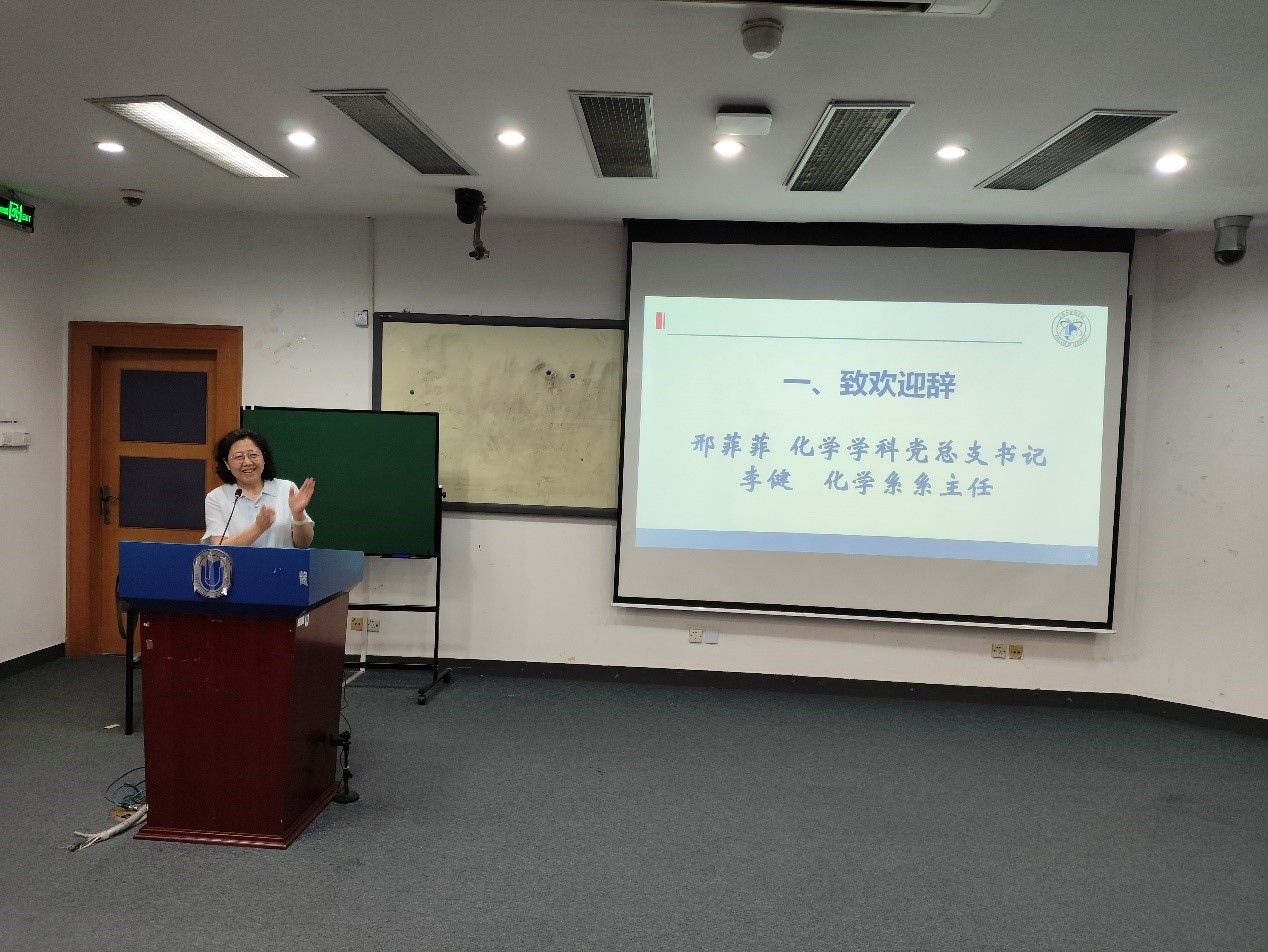 李健主任表示终于在盼望中迎接了各位同学的到来,未来三年时光将与同学们教学相伴,化学系从人才培养队伍、学科平台实力、分流奖学金、优秀校友资源等方面都给同学们提供大力支持保障,化学系从领导班子、导师团队到行政教辅、朋辈力量都是具有强大凝聚力的队伍,希望大家能够在化学系度过愉快的三年时光。