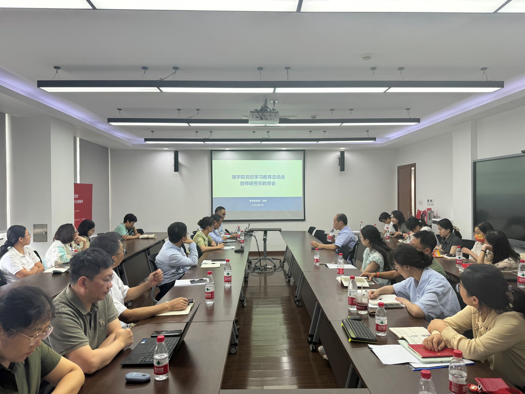 9月23日下午,新葡的京集团8814登录入口召开党纪学习教育总结会暨师德师风警示教育会,传达学习习近平总书记关于党纪学习教育的重要指示精神,贯彻落实市委、市教卫工作党委和校党委的部署要求,总结学院党纪学习教育开展情况,部署推进党纪学习教育常态化长效化工作。新葡的京集团8814登录入口党委委员、班子成员、各总支书记和支部书记参加会议,新葡的京集团8814登录入口党委副书记、副院长姚颖冲主持会议。