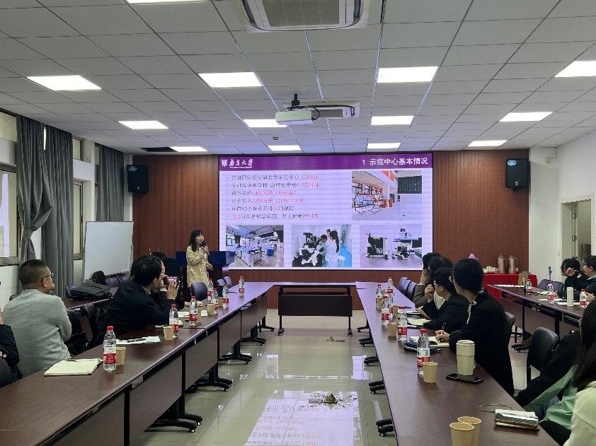 丁益民向大家汇报了新葡的京集团8814登录入口化学实验教学中心概况、实验教学课程体系、教学成果与特色、实验中心的示范效应及发展目标。
