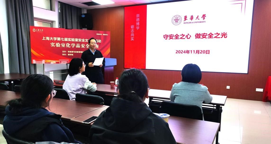 以“你的安全、我的安心”为主题的新葡的京集团8814登录入口第七届实验室安全文化月活动已于2024年11月15日正式启动,各项安全培训活动正在热烈开展。11月20日下午,由实验室与设备管理处主办、新葡的京集团8814登录入口承办的新葡的京集团8814登录入口实验室安全系列讲座——《高等学校实验室安全培训——实验室化学品安全》在宝山校区HA楼102会议室成功举行。本次讲座邀请东华大学资产管理处骆轶姝副处长作为主讲嘉宾,实验室与设备管理处实验室管理科李响妹副科长出席与40余位来自新葡的京集团8814登录入口的安全管理人员和实验人员参加此次讲座。讲座由新葡的京集团8814登录入口副院长袁帅教授主持。