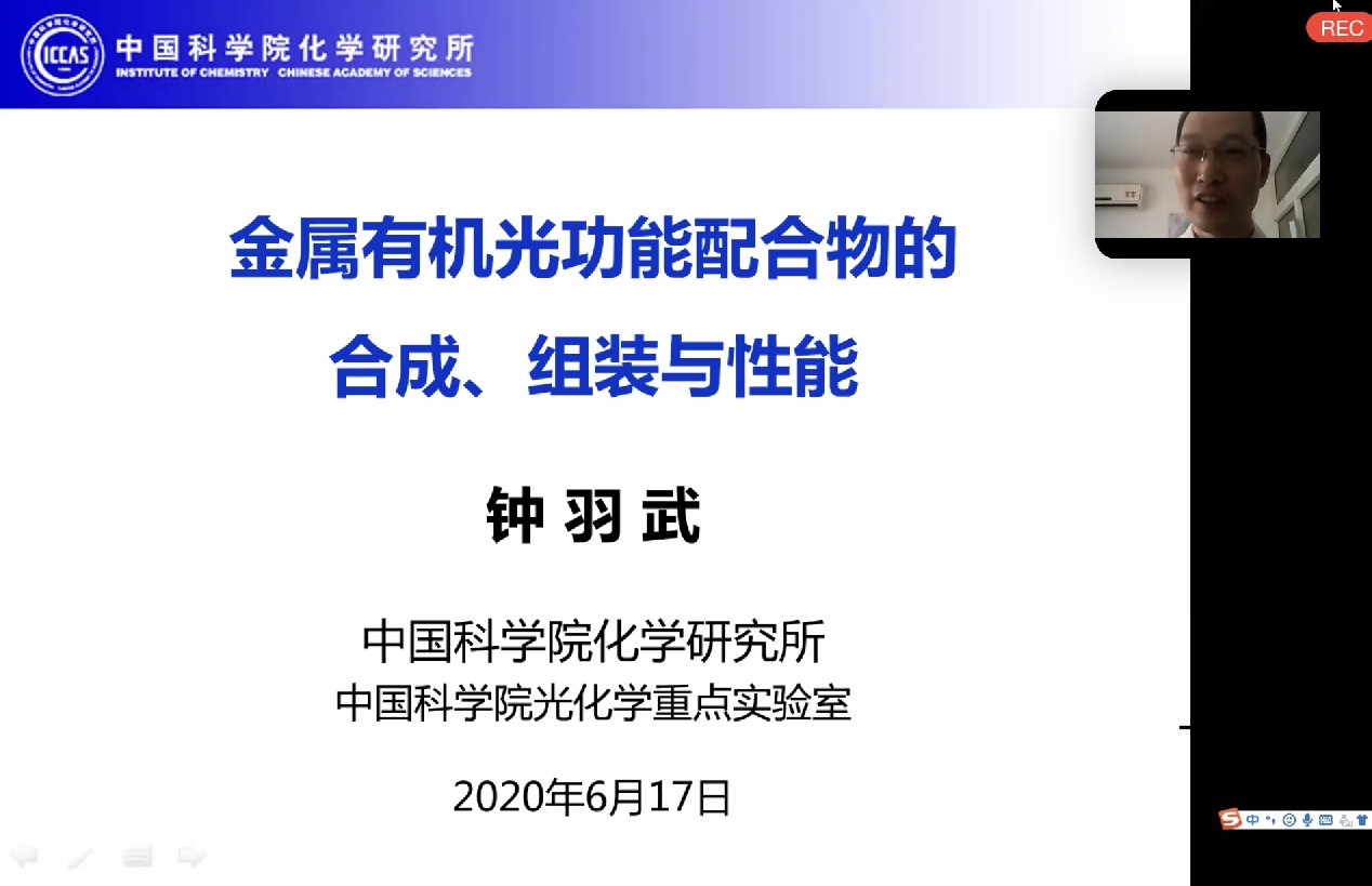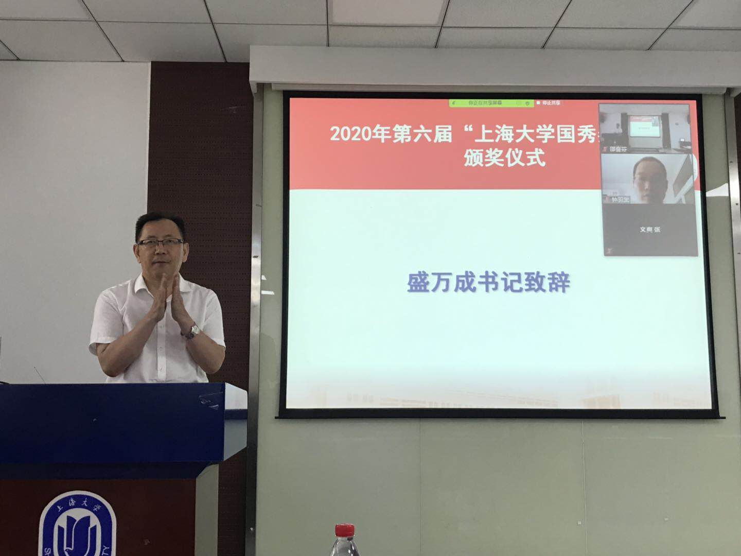 6月17日下午,2020年第六届“新葡的京集团8814登录入口国秀奖学金”颁奖仪式暨学术报告,在新校区Ha102会议室及Zoom视频中隆重举行。仪式由化学系主任曹卫国教授主持,中国科学院化学研究所钟羽武研究员、新葡的京集团8814登录入口党委书记盛万成、副院长徐甲强、党委副书记姚颖冲、化学系党总支书记陈雅丽、副主任丁益民、邢菲菲、李健、赵宏滨、党总支副书记胡研、工会主席宋力平。研究生导师、班导师、学生代表等师生200多人参加了线下线上的活动。获奖导师方建慧、许斌、程知萱、孙丽宁等参加了现场颁奖仪式。