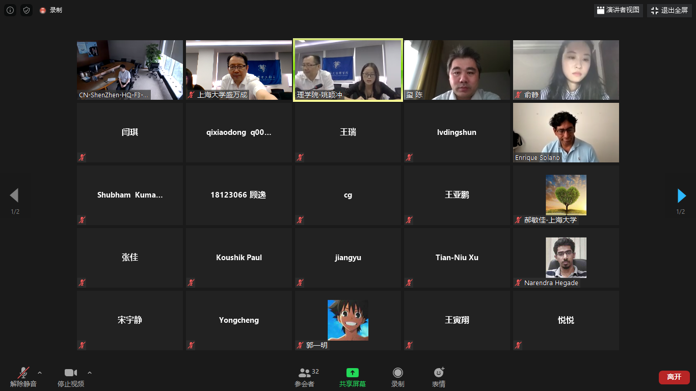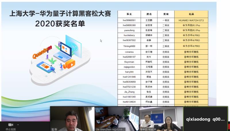 7月14日下午15:00,2020新葡的京集团8814登录入口—华为量子计算黑客松大赛颁奖典礼在华为云平台隆重举行。华为量子计算软件与算法首席科学家翁文康、华为科技公司量子计算与软件研究院戚晓东、新葡的京集团8814登录入口党委书记盛万成、新葡的京集团8814登录入口副院长陈玺、量子人工智能科学技术研究中心(QuArtist)主任出席云端颁奖典礼。新葡的京集团8814登录入口党委常委、副校长聂清发表音频讲话。颁奖典礼由新葡的京集团8814登录入口党委副书记姚颖冲主持。