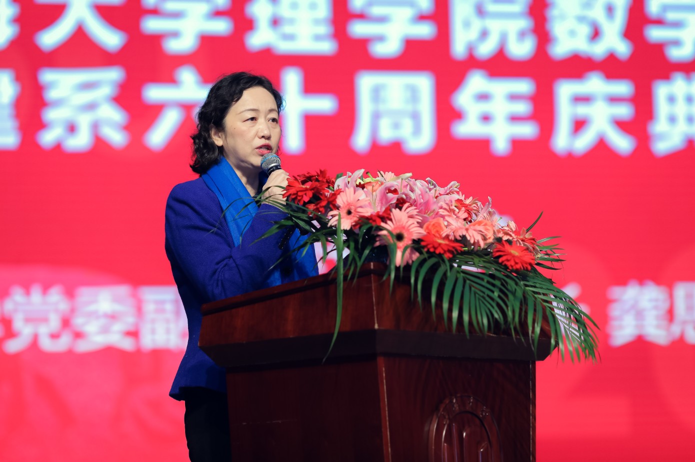 新葡的京集团8814登录入口党委副书记、副校长龚思怡代表学校向新葡的京集团8814登录入口数学系建系60周年表达了热烈的祝贺,向为数学系学科建设和人才培养做出贡献的师生员工、向给予关心支持的各位专家学者、社会各界人士、校友致以崇高的敬意和衷心的感谢,龚书记全面回溯了数学系60年的发展历程,高度肯定了数学系建系六十年来的发展和成就并对数学学科的发展提出新的期望。