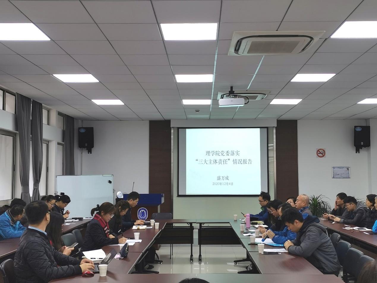 首先,新葡的京集团8814登录入口党委书记盛万成代表学院党委汇报落实“三大主题责任”情况。2020年是新葡的京集团8814登录入口“全国党建工作标杆院系”建设收官之年,紧紧围绕“高质量党建引领学院全面发展”目标,盛万成书记分别从意识形态建设、基层党建工作、党风廉政建设和党内监督工作三大方面做了全面总结,并指出在现有建设成果的基础上,要进一步加标杆党建的广度和深度,落实立德树人根本任务,切实增强高质量党建的实效,科学统筹规划,进一步加强党建引领学科高水平发展和一流学院建设。随后,新葡的京集团8814登录入口主持工作副院长张登松代表新葡的京集团8814登录入口领导班子做了述职报告,从政治思想建设、班子运行机制、工作实绩、工作作风和工作计划等方面做了系统阐述,展示了新葡的京集团8814登录入口过去一年在科研创新、教学成果、国际合作、人才引进等方面取得的显著成绩和进一步发展的目标。