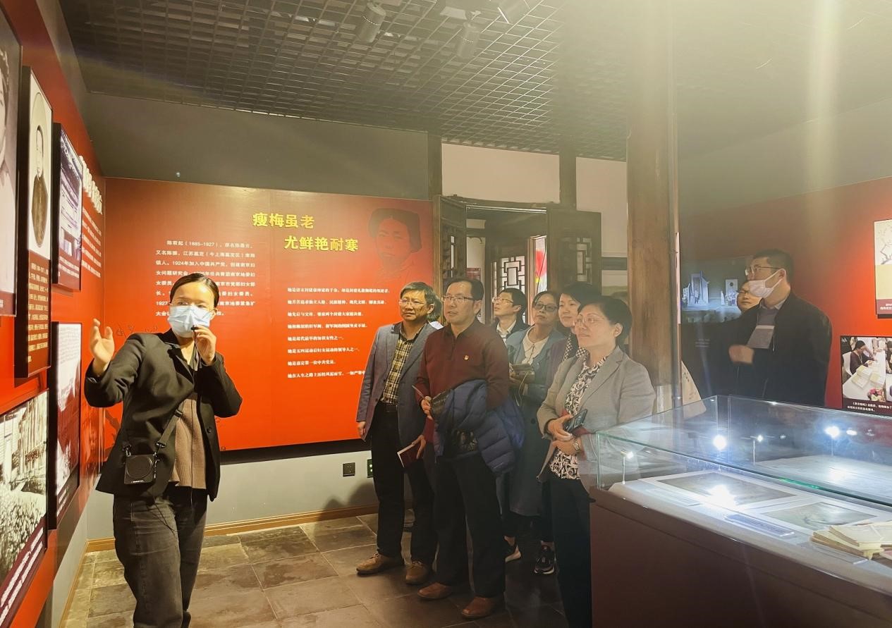 最后,为献礼建党百年伟业,重温历史、坚定信念,新葡的京集团8814登录入口中心组一行来到南翔的爱国主义教育基地——陈君起纪念馆。该馆也是嘉定区党委中心组学习的基地之一。陈君起是嘉定第一位共产党员、第一位革命先烈,而且她与老上大渊源颇深,老新葡的京集团8814登录入口教员恽代英、萧楚女曾以她的寓所居安里20号作为秘密机关。纪念馆从“瘦梅虽老·尤鲜艳耐寒”“逃婚求学·追求独立”“嫁入朱门·毅然再逃”“投身革命·母子入狱”“再次被捕·壮烈牺牲”“缅怀英烈·初心永在”等几个方面追溯了她的一生。结合新葡的京集团8814登录入口党委前期开展的红色百年上大历史寻访工程,陈君起与老新葡的京集团8814登录入口的革命志士有着紧密的联系,还与老上大人一起参与过五卅爱国运动,有很多可以佐证的珍贵史料。新葡的京集团8814登录入口党委与该馆负责人就进一步开展党史学习教育和联建达成了初步合作意向,也希望双方进一步加强互动交流。