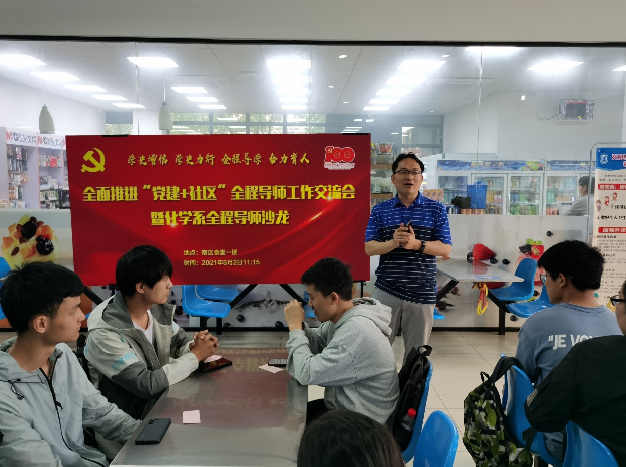 6月2日,为推动落实新葡的京集团8814登录入口党委关于党史学习教育“我为师生办实事”实践活动的工作要求,新葡的京集团8814登录入口化学系在南区食堂一楼承办了全面推进“党建+社区”全程导师工作交流会暨化学系全程导师沙龙。新葡的京集团8814登录入口党委书记盛万成,院党委副书记陈然、姚颖冲,院工会主席、纪委委员张敏,化学系主任曹卫国、副主任邢菲菲、李健、系党总支副书记胡研、系工会主席宋力平及全程导师、党支部书记、部分学生参加了沙龙。新葡的京集团8814登录入口化学学科党总支书记陈雅丽主持活动。