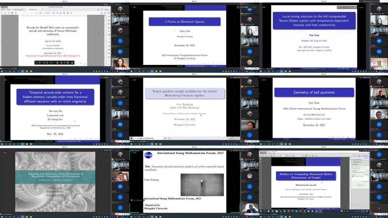 11月20日,新葡的京集团8814登录入口数学学科2022年国际青年学者论坛在宝山校区F楼309举行。本次会议由新葡的京集团8814登录入口主办,新葡的京集团8814登录入口数学系承办。本次论坛收到来自美国、德国、巴基斯坦、印度、中国等国内外著名高校或科研机构的众多青年学者的申请,择优遴选出9位青年学者参加线上论坛。