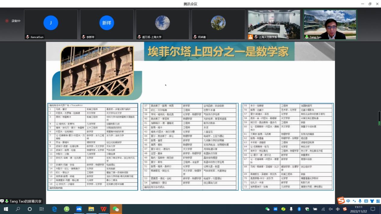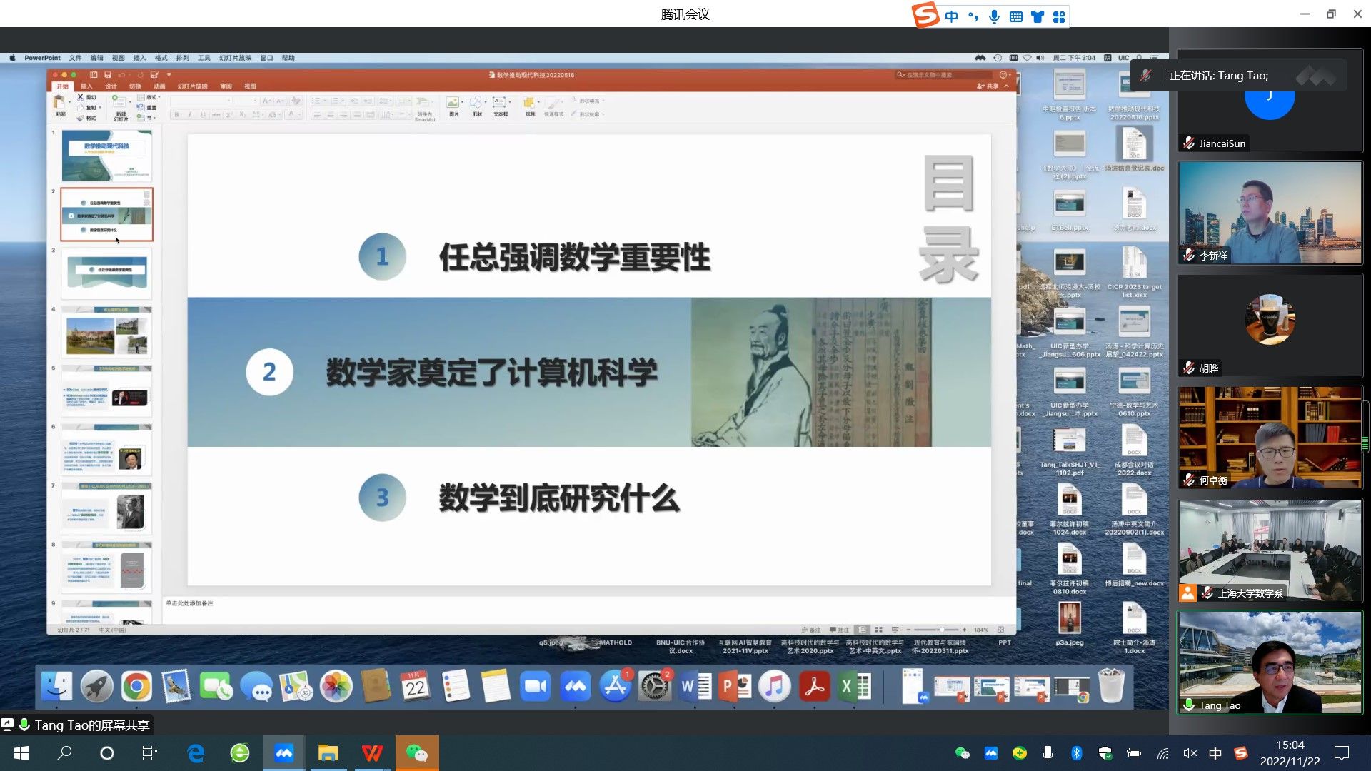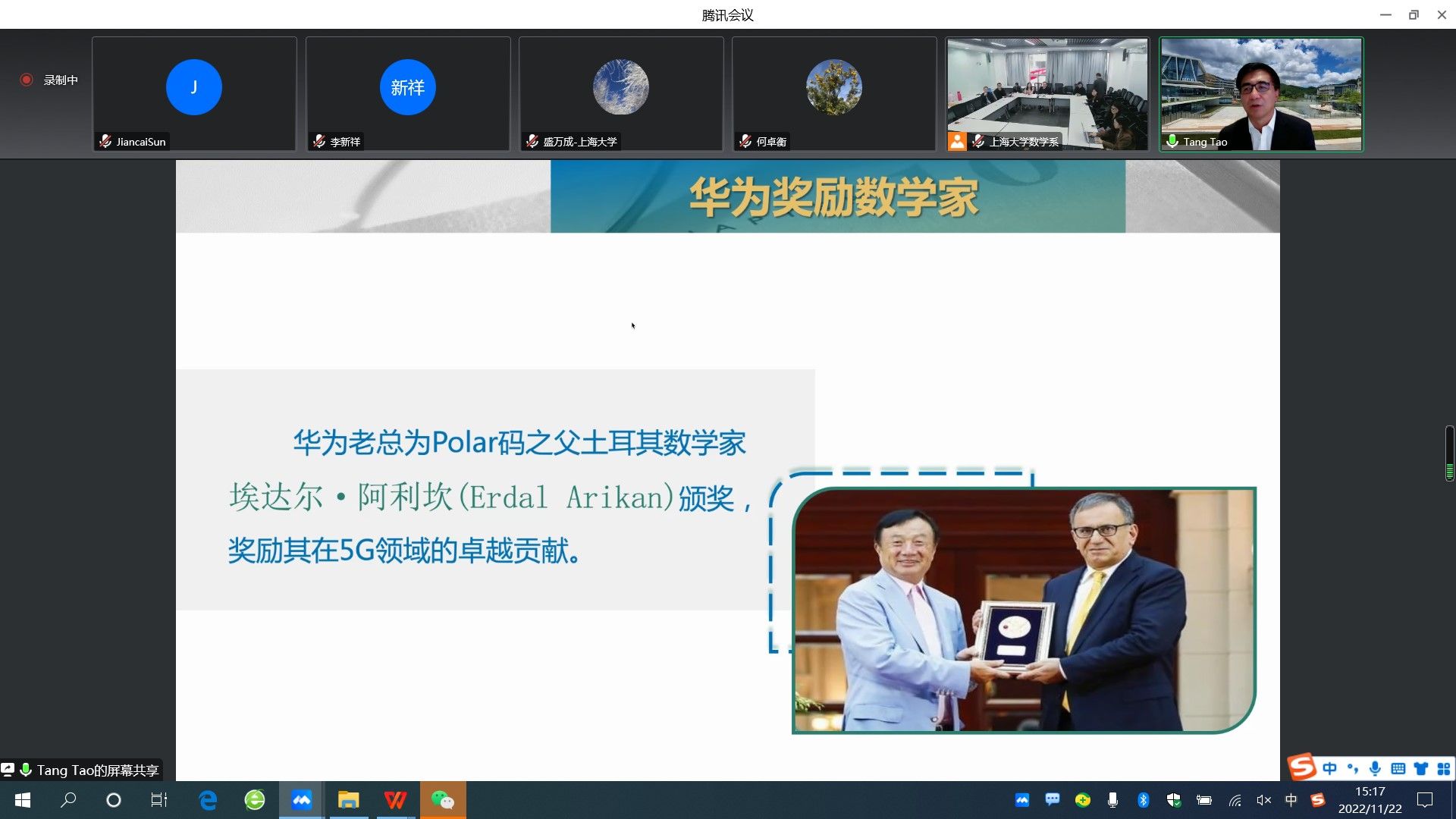 数学与国民经济中的很多领域休戚相关,其中互联网、计算机核心算法、图像处理、语音识别、云计算、人工智能、5G等IT业主要研发领域都是以数学为基础的。为提升师生科学素养和文化素养,新葡的京集团8814登录入口当代科学前沿讲坛第266讲特邀中国科学院院士汤涛,于11月22日下午作了题为“数学推动现代科技--从华为重视数学谈起”的线上报告。本次报告由新葡的京集团8814登录入口党委书记盛万成教授主持,新葡的京集团8814登录入口数学系班子成员、骨干教师及尚理书院学生共200多人线上线下参加了报告。