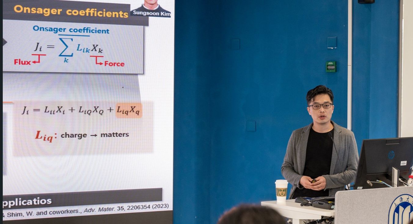 Wooyoung Shim教授做了题为“Ion transport within van der Waals crystals”精彩报告。介绍了他在范德华晶体中的离子传输研究方面最新进展。力-流关系是解释非平衡系统中驱动力下物质传输的基本概念。Onsager倒易关系较好地描述了上述关系,它描述了浓度、温度和电压的梯度如何驱动质量、热量和电荷的传输,同时还考虑了交叉效应。Shim教授介绍了由电压梯度驱动的离子传输如何根据扩散介质而变化,以及如何在各种技术应用中利用这种传输。报告主要讨论了具有范德华间隙的层状材料,这些材料可促进离子沿着具有低扩散能垒的路径移动。这些材料在半导体、金属和绝缘体中具有巨大潜力,可以用作存储设备、开关设备和离子筛膜。