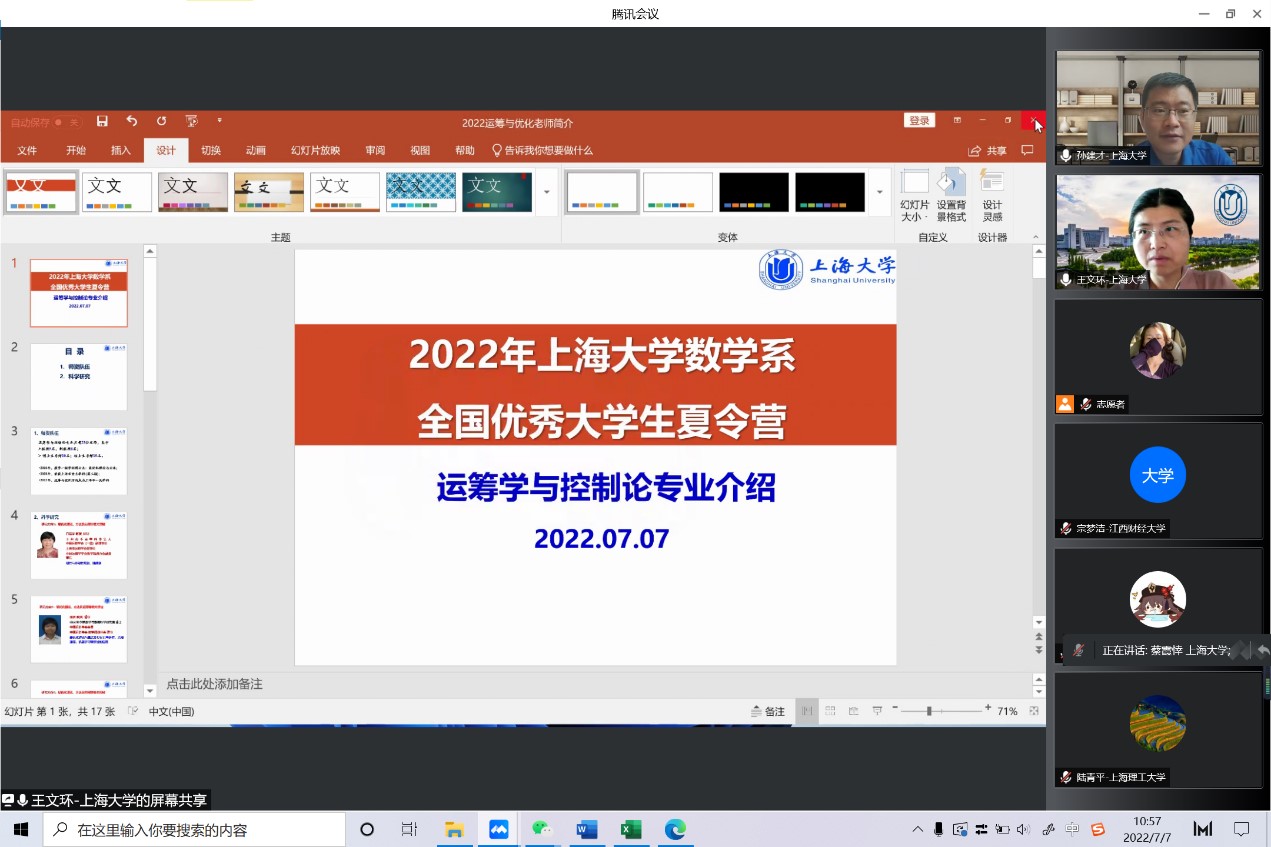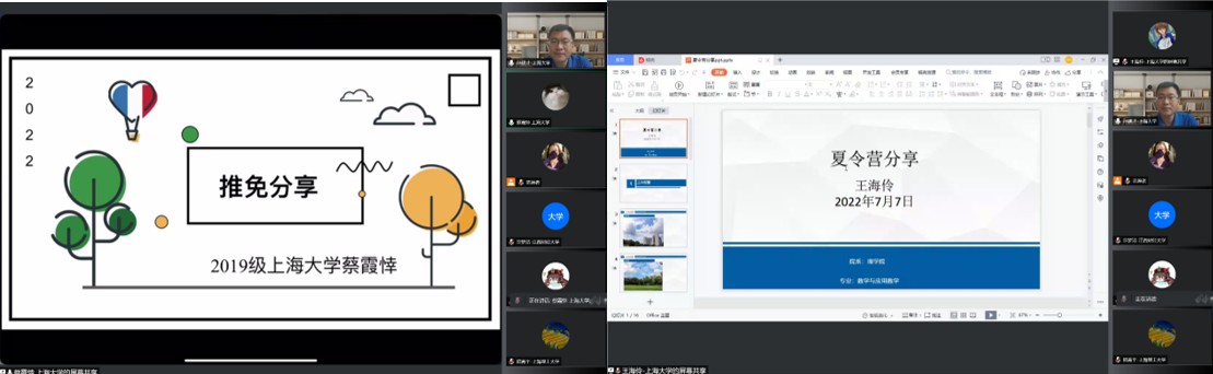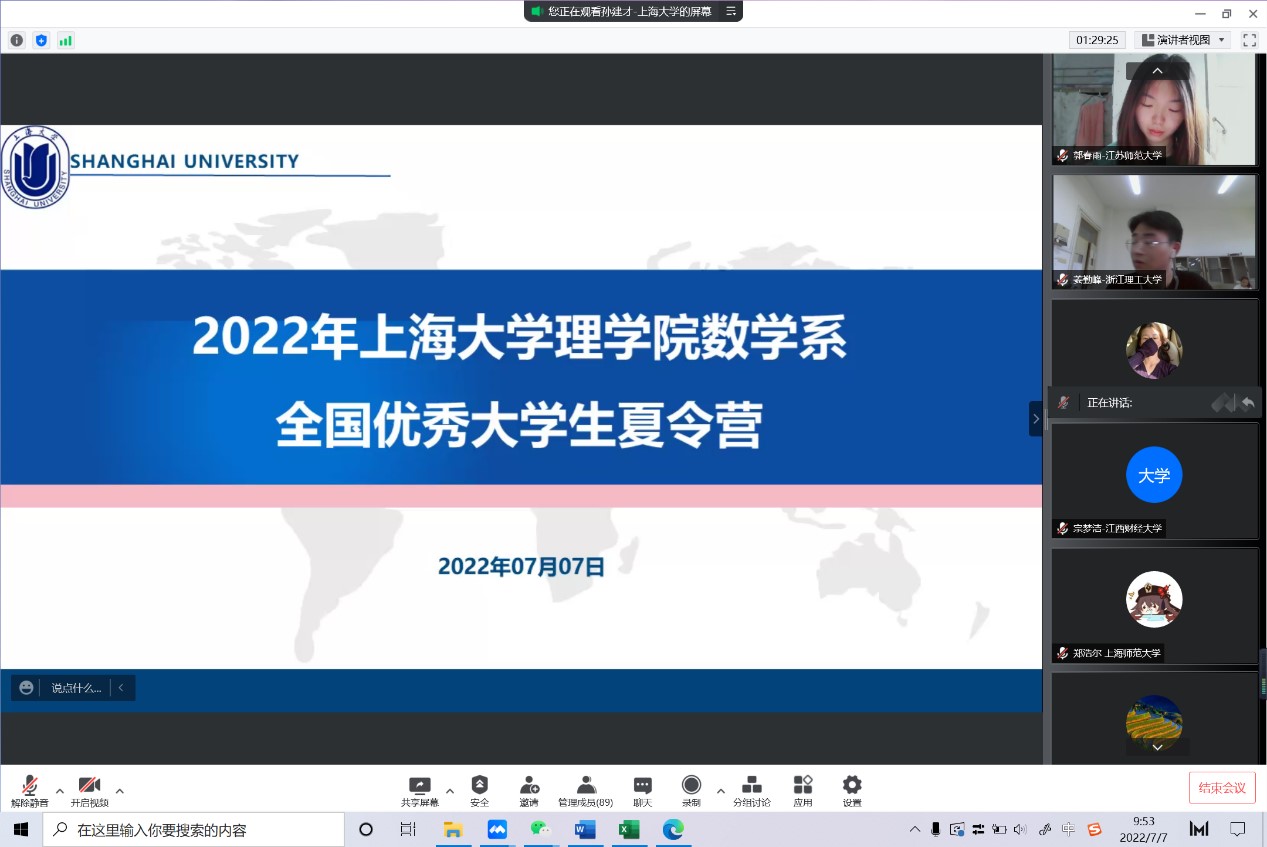 孙建才副教授做了数学系研究生招生政策宣讲。参加线上夏令营的师生发言踊跃,交流思想,分享心得。