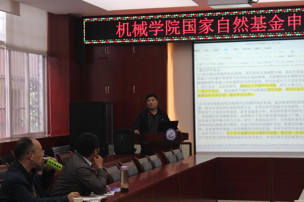 寇发荣首先介绍了机械学院历年来学院国家基金获批情况:2018年学院获批国家自然科学基金7项,其中重点基金1项,面上项目3项,国际联合基金1项,青年基金2项;与国内及省内同类院校进行了对比分析,鼓励老师们要提早动手、积累高水平成果、提高国家基金申请书撰写水平。宗学文、龚晓燕、杨满芝、高中堂等4位获得过国家自然科学基金的教师,分享了国家基金申报的成功经验。与会的每位教师分别结合基金评审反馈意见和存在的问题作了发言,并与大家进行了深入而热烈的交流探讨。