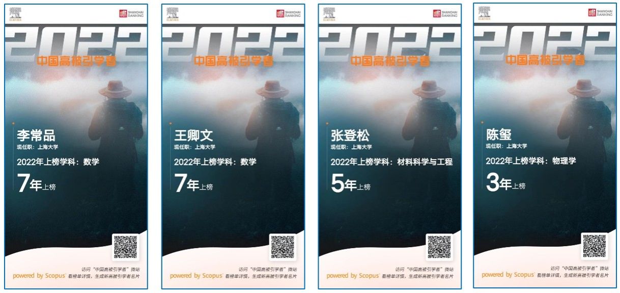 李常品教授和王卿文教授连续7年入选爱思唯尔中国高被引学者榜单;张登松教授连续5年入选爱思唯尔中国高被引学者榜单;陈玺教授连续3年入选爱思唯尔中国高被引学者榜单;张久俊教授、杰夫·瑞默斯教授和尤里·德科夫教授连续2年入选爱思唯尔中国高被引学者榜单。
