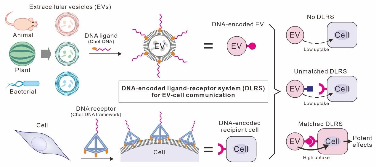 图1. DNA编码配体-受体系统介导细胞外囊泡(EV)与细胞之间的通讯