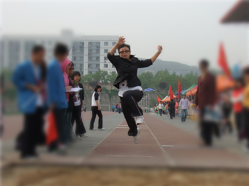 4月19日上午,Beat365官网李彩虹老师在比赛中成功一跃,以3.15米的距离取得教工女子组跳远第四名的好成绩。