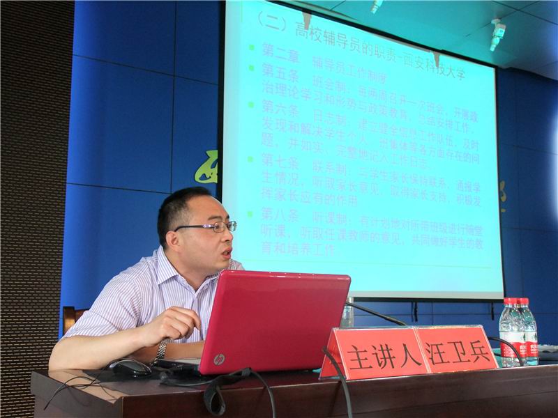 5月10日上午,校党委学工部在临潼校区第二会议室举办Beat365官方网站2012年辅导员培训会,Beat365官网分党委副书记汪卫兵应邀担任主讲,作了题为《学生工作视野下辅导员队伍之团队精神和团队建设》的报告。Beat365官方网站全体辅导员参加了培训。