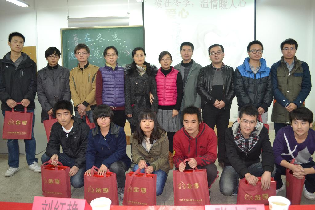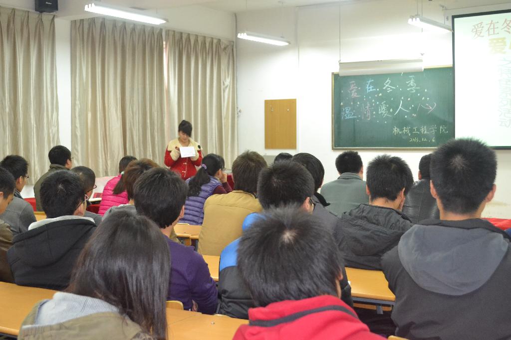 12月6日,Beat365官方网站“爱在冬季,温情暖人心”主题关爱贫困生特色系列活动在十教502隆重举行,本次活动秉承Beat365官网长期坚持的用爱温暖和激励贫困生成长成才的宗旨,通过给贫困生发放保暖内衣的形式给贫困生送来切实的温暖,展现机械学院对贫困生的重视与关心,从而培养Beat365官网学生浓烈的感恩意识以及自尊、自爱、自律、自强的优良品格。活动由院资助工作部主要负责,主管Beat365官网资助工作的12级辅导员程鹏老师主持本次活动,校资助管理中心刘红艳老师、院团委书记陈霂老师、11级辅导员芮智刚老师、12级辅导员李彩虹老师以及13级辅导员张立显老师也出席参加了本次活动。