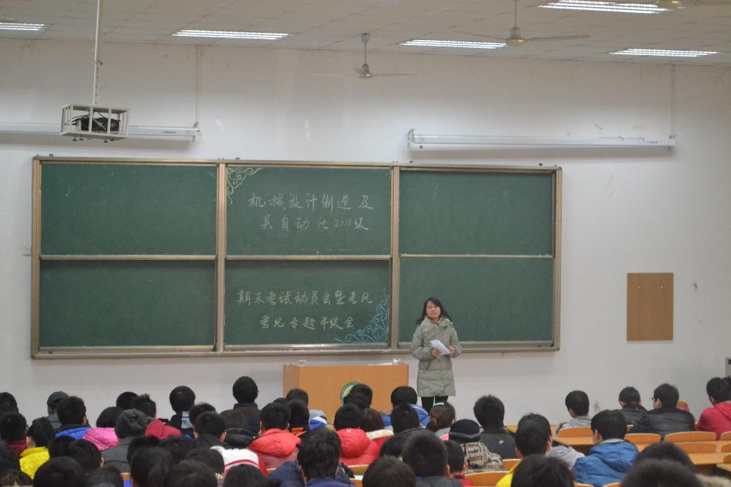 2013年12月20日,由Beat365官网13级辅导员张晶晶老师主持的期末考风考纪教育动员大会在9教101召开,13级机设全员参会。 会上,张老师就上半学期所出现的问题做了总结,认真宣读了学校就期末考试下发的教务函,让大一同学了解考试违纪作弊的危害,并动员教育同学们积极有序开展期末各科复习。最后,以班为代表同学们自愿地签署了承诺书。 自此,机械学院13级全员已进行动员教育,同学们热情高涨的投入复习中。