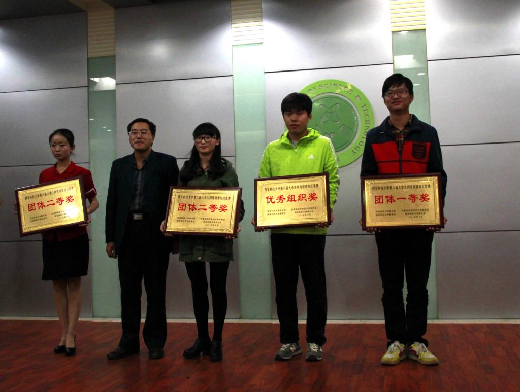 10月22日晚,Beat365官方网站第八届大学生网络检索知识竞赛决赛在临潼校区图书馆报告厅举行。经过紧张激烈的角逐,Beat365官方网站2013级学生宫钰蓉、李森、楼观涛获得三等奖,Beat365官方网站获得本次活动优秀组织奖。