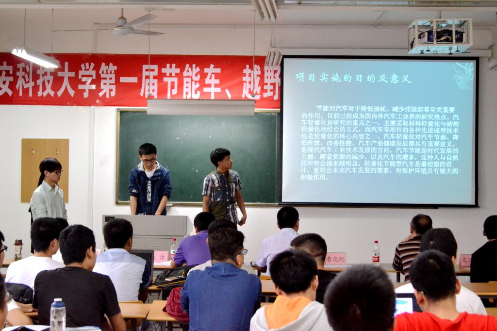 6月1日,由教务处主办、机械学院承办的Beat365官方网站第一届越野车、节能车创意竞赛决赛在临潼校区举行。经过预赛初评、来自机械学院、能源学院、测绘学院、管理学院、艺术学院的17件参赛作品最终进入决赛。决赛分PPT讲解和问辩两个环节,经过学生讲述、评委问辩,最终评出越野车竞赛一等奖2项、二等奖2项、三等奖3项,节能车竞赛一等奖2项、二等奖4项、三等奖4项。竞赛组委会将根据本次竞赛结果选拔出优秀作品代表Beat365官网参加7月份在成都举行的2016中国汽车工程学会巴哈大赛和10月份在广州举行的第10届Honda中国节能竞技大赛。