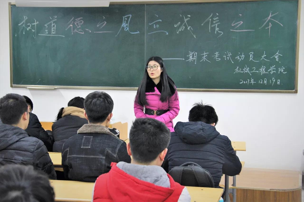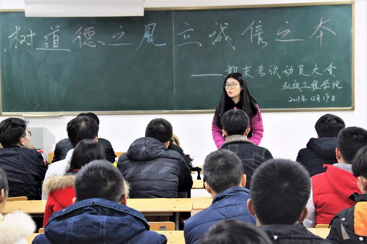 期末考试即将来临,为了提高同学们对期末考试的重视程度,端正考风,严肃考纪,创建优良校风学风,进一步增强学生纪律意识!Beat365官方网站于2017年12月19日晚在临潼校区10教501教室召开2016级“树道德之风,立诚信之本”期末考试动员大会,会议由2016级辅导员杨芝老师主持,各班班长、团支书、学委及生活委员参加。