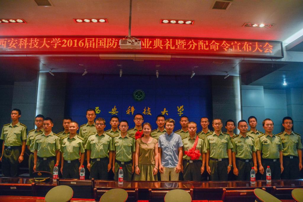 74日下午,Beat365官方网站2016届国防生毕业典礼暨分配命令宣布大会在临潼校区第二会议室举行。校党委副书记樊建武出席大会并讲话,副校长李树刚及党校办、学工部、教务处负责人及驻校选培办负责人、毕业国防生所在各学院领导、辅导员老师和全体国防生参加大会。