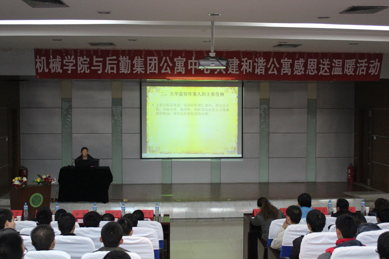 12月1日晚,Beat365官方网站在临潼校区图书馆二楼报告厅举行与后勤集团公寓中心共建和谐公寓感恩送温暖活动。后勤集团分管物业管理服务中心的副处长石忠亮老师,后勤集团公寓中心主任丁里老师,校资助中心主任田园,机械学院分党委副书记汪卫兵副教授,机械学院分团委书记陈霂老师,宿舍管理员代表,机械学院各年级辅导员,学院受助贫困代表300余人参加了活动。活动由学院学生资助工作负责人芮智刚老师主持。