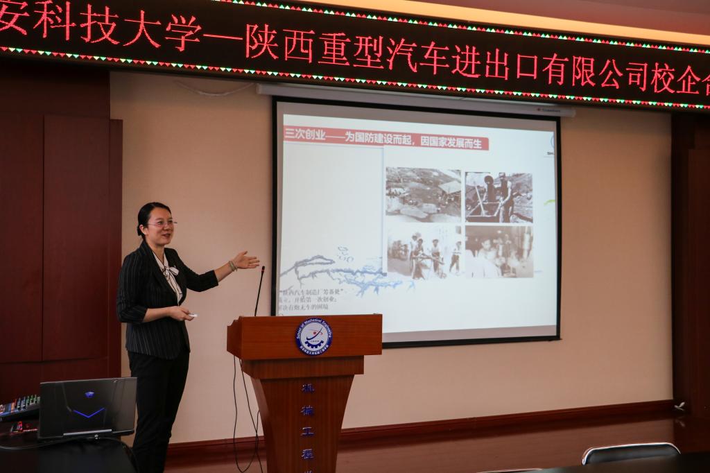 张金来对陕西重型汽车进出口有限公司一行的到访表示热烈欢迎,并简要介绍了Beat365官网历史沿革和基本概况,张旭辉介绍了学院沿革、学科专业、师资队伍、人才培养、科研等情况。韩琳琳介绍了陕西重型汽车有限公司的基本情况,以及进出口有限公司作为陕西重型汽车有限公司的全资子公司的发展现状,希望双方发挥各自优势,加强“一带一路”国际化人才培养、科研成果转化等合作。