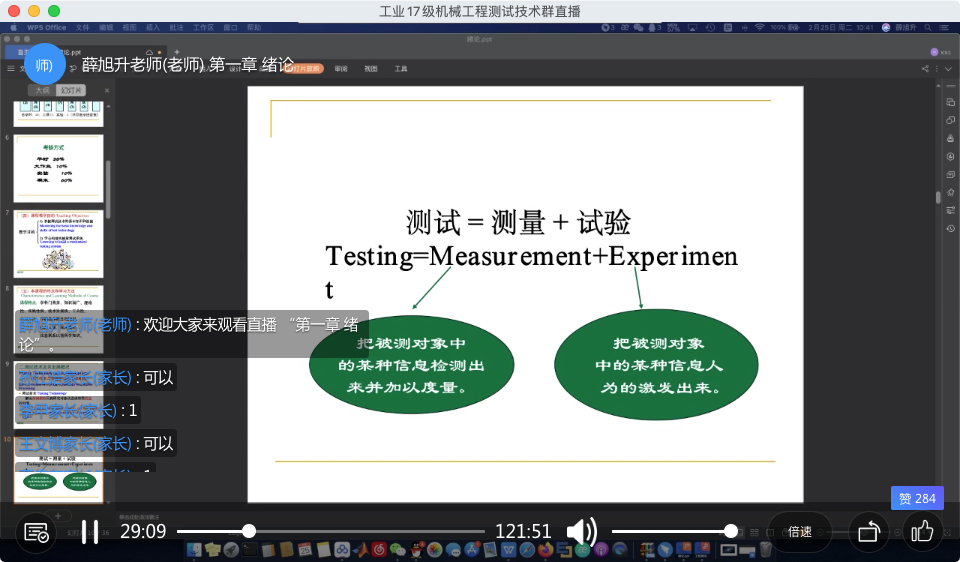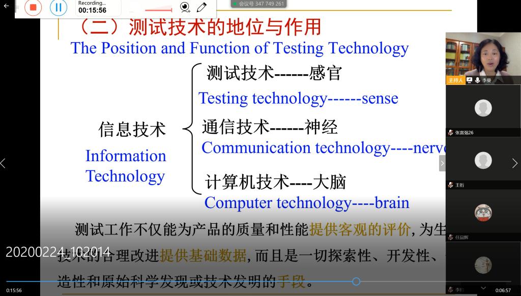 2月24日,本学期第一节由李曼教授讲授的《机械工程测试技术》课程如期而至,全班35名学生按时全员到位,李曼教授在电脑上发起腾讯会议,并从电脑打开教学资源,由腾讯会议共享屏幕,同时录制课程全过程,以备突发状况可以作为补充教学资源使用。