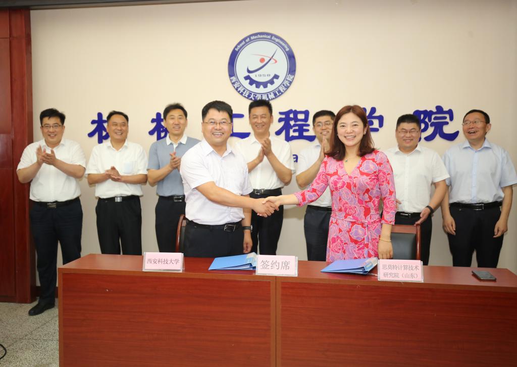 张金来首先致欢迎词,并介绍了学校及机械学院的历史沿革和发展现状。张涛对学校科研成果、科研特色方向、科研团队情况等进行了详细阐述,尤其学校在煤矿开采领域的科研成就。张旭辉从学院学科建设、人才培养、科学研究等方面进行了介绍,并指出学院与天河科技前期已开展了深度的校企合作,双方今后合作空间广泛。接下来,杜庆节介绍了邹城市的基本情况,强调了邹城市特色产业和校企合作的必要性,并对机械学院在煤矿智能装备、智能机器人等领域取得的科研成就表达了浓厚的兴趣。会后,张旭辉代表学院与思莫特计算技术研究院(山东)负责人签订了技术合作协议。