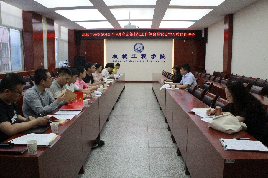 9月8日下午,机械学院在雁塔校区召开党支部书记工作例会暨党史学习教育推进会,党委副书记尹弘、组织员席芝红和全体党支部书记参加会议,党委书记张金来主持会议并讲话。