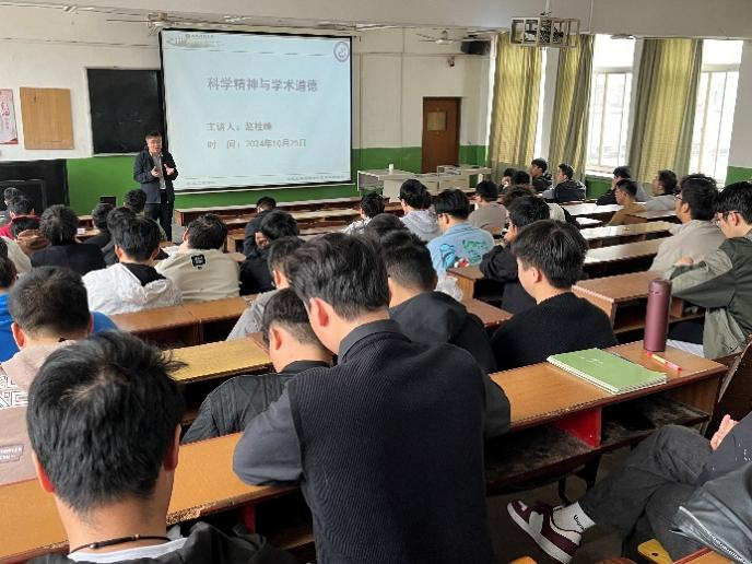 为弘扬科学精神,强化学术道德观念,提升研究生的科学素养和道德水平,营造浓厚的学术氛围。10月25日上午,机械学院在雁塔校区主楼501举办了“科学精神与学术道德”第一场主题报告会,报告会由机械学院副院长赵栓峰教授主讲,学院2024级全体研究生参加此次报告会。