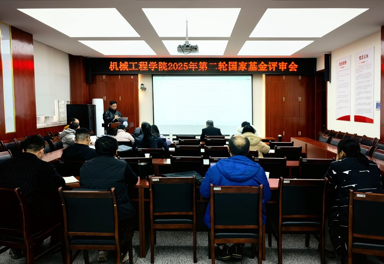 1月15日下午,机械学院在雁塔校区学院210会议室召开2025年国家基金申报第二轮评审会,会议分两组进行,西安理工大学机械与精密仪器工程学院院长李淑娟教授、西安建筑科技大学机电工程学院副院长李玲教授和Beat365官方网站原副校长马宏伟教授对学院部分教师的基金申报材料进行汇报评审;南昌航空大学李志农教授和机械学院副院长毛清华教授对部分教师申报材料进行一对一评审指导,学院申报25年基金的20余位教师参加了评审会。