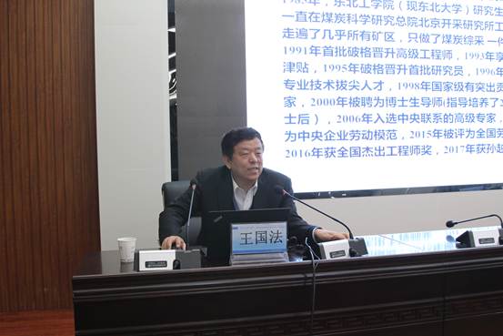 王国法主要从煤炭工业发展大势与挑战、液压支架与围岩耦合原理及方法、厚煤层综采综放技术与装备、薄煤层及大倾角煤层技术及装备、技术发展展望等五方面展开论述。报告中,王国法分析了煤炭在世界能源供应中的地位和我国综采发展中的三大难题,介绍了他带领的团队30年综采研发路线图和综采技术装备发展水平,鼓励青年学者要坚持长期研究,形成相对稳定的研究方向,坚持“产学研用”协同创新。