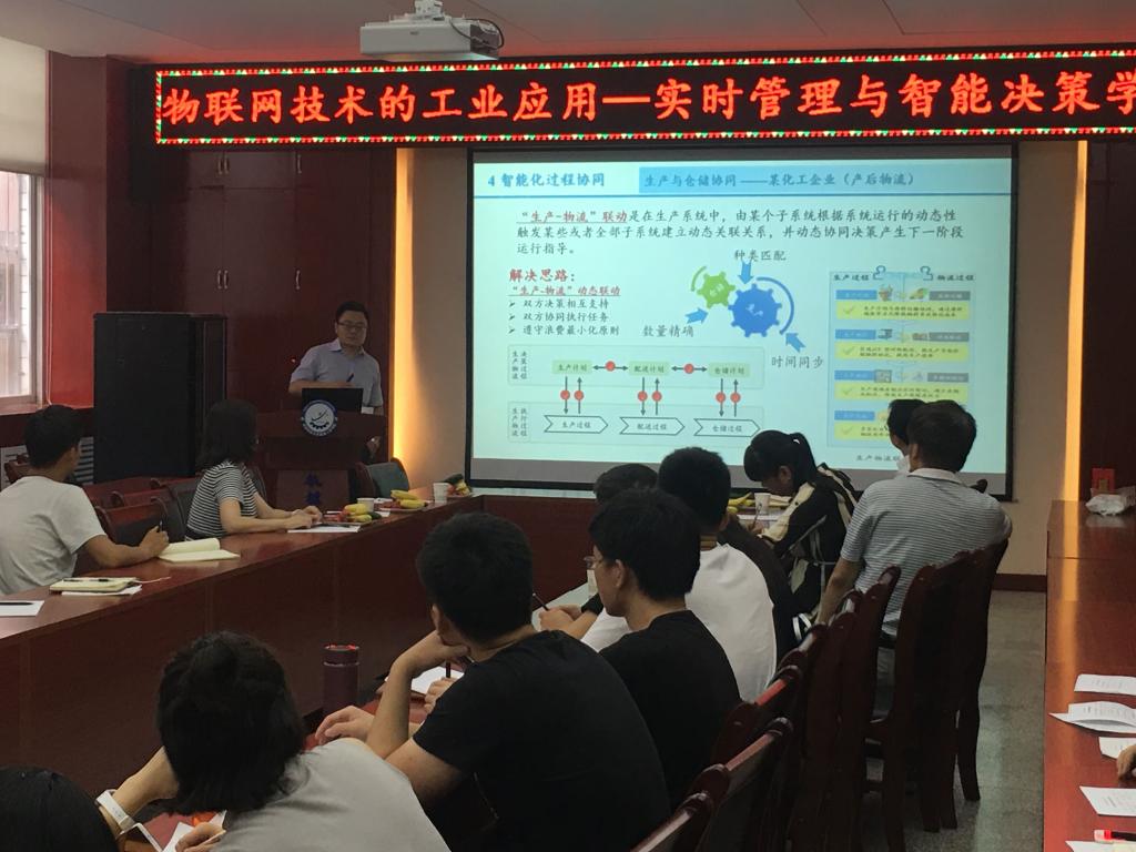 屈挺就物联网内涵及发展现状进行了深入阐述,重点对制造业物联网开发应用案例进行了分析,对“工业4.0”和“中国制造2025”背景下物联网技术的关键问题进行了探讨。最后,屈教授就相关学术问题和与会师生进行了交流讨论。