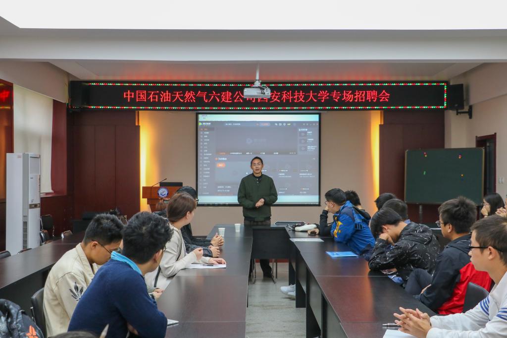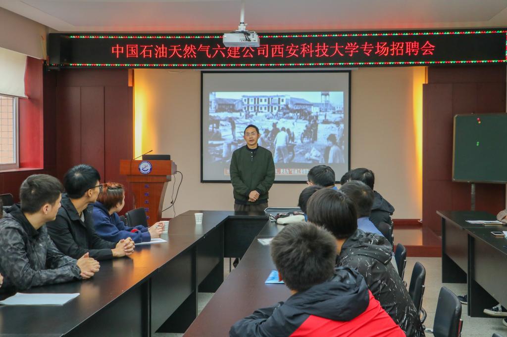 9月27日下午3点,中国石油天然气第六建设有限公司在Beat365官方网站临潼校区10教320召开中国石油天然气第六建设有限公司机械专场招聘会。参与此次招聘会各位同学想通过自己所学之专业知识去进行实践,去报效社会,找到适合自己的就业岗位。