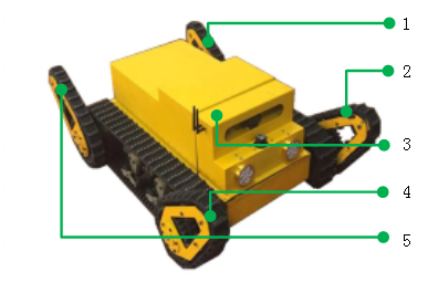 1-后左摆臂系统,2-前左摆臂系统,3-机器人本体,4-前右摆臂系统,5-后右摆臂系统