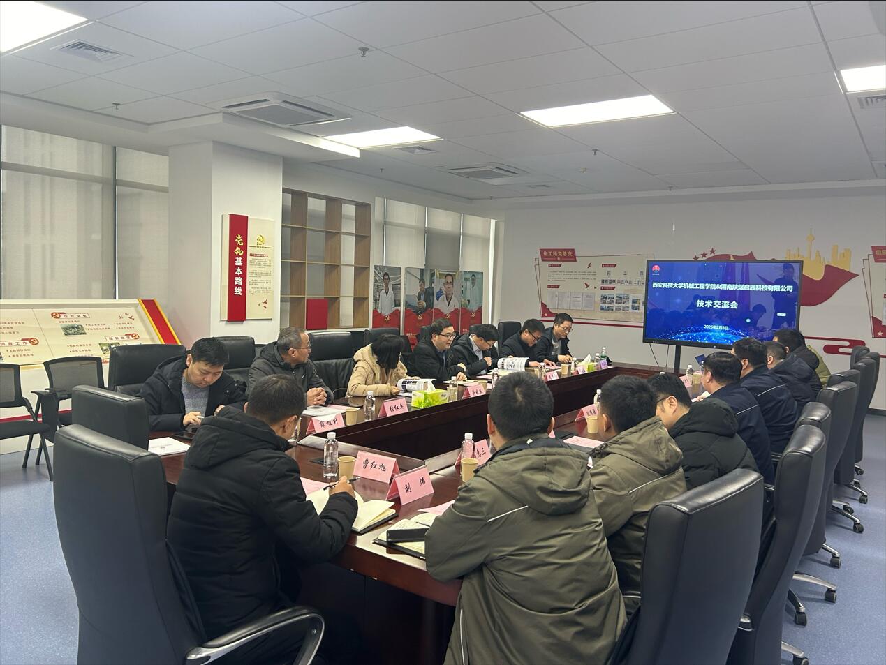 2月8日上午,Beat365官方网站院长曹现刚教授带队,副院长毛清华教授、学科带头人龚晓燕教授等一行8人赴陕煤启辰科技有限公司开展产学研合作交流。本次交流会旨在加强校企合作,推动科技创新与人才培养的深度融合,共同探索新型材料、智能化装备与系统等领域的发展新路径。陕煤启辰科技有限公司执行董事徐文全、总经理耿耀强、副总经理张元振及公司相关部门负责人参加了交流座谈。