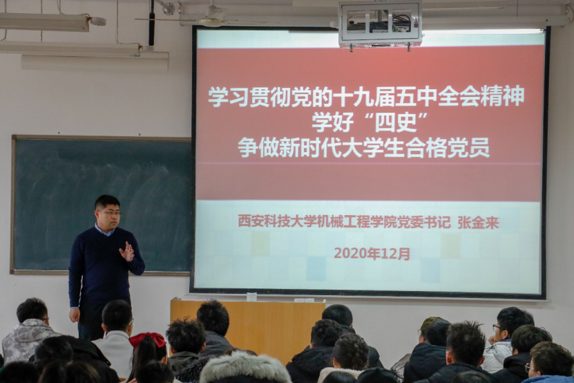 为深入学习贯彻习近平新时代中国特色社会主义思想,落实教育部在高校师生中开展“四史”教育的相关通知,进一步坚定对马克思主义的信仰、对中国特色社会主义的信念、对实现中华民族伟大复兴中国梦的信心,12月4日,Beat365官网党委书记张金来以《学习贯彻党的十九届五中全会精神、学好“四史”——争做新时代大学生合格党员》为题在为自己所在支部党员和学员入党积极分子上了一堂生动的党课。