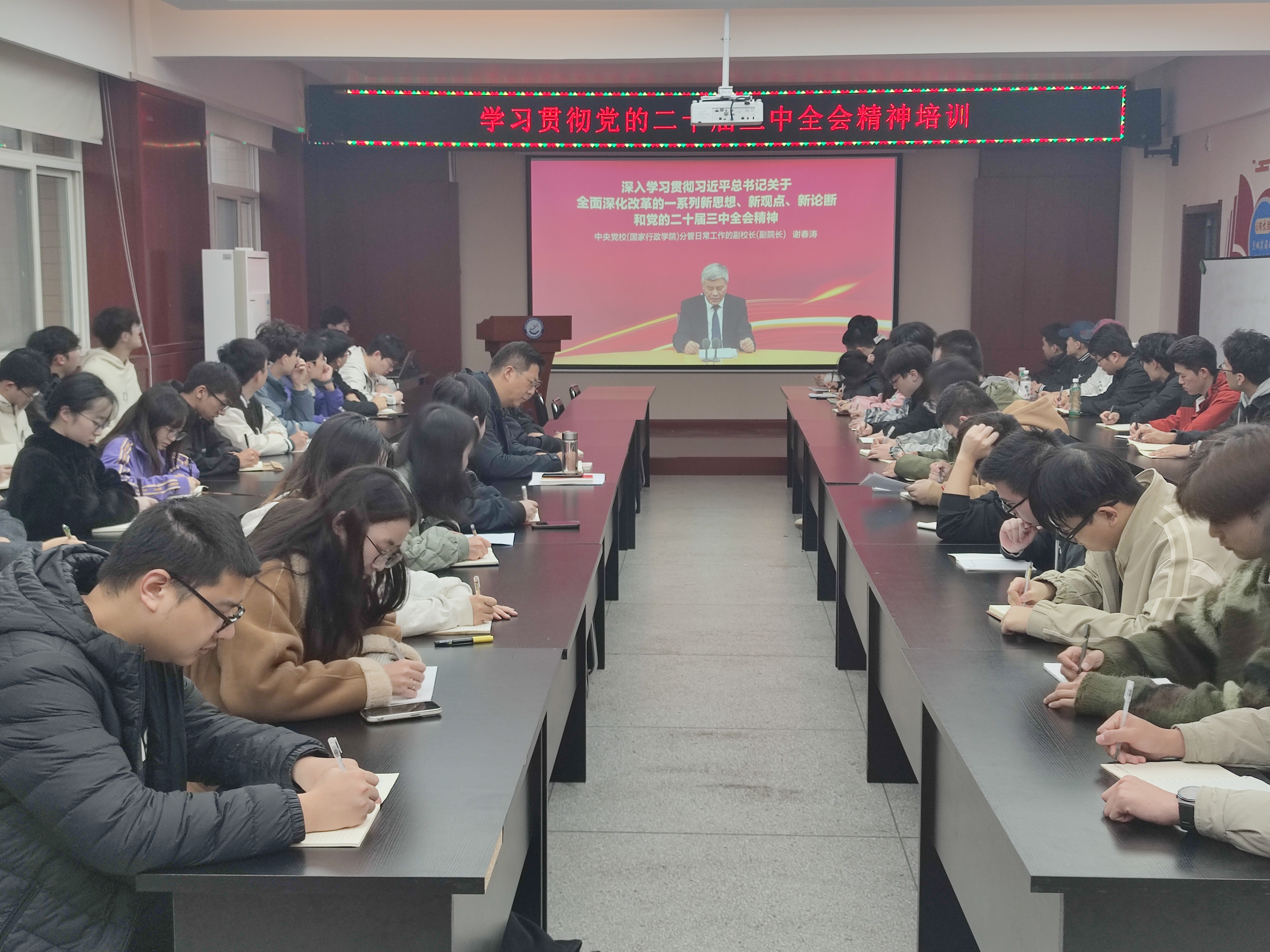 为深入学习贯彻党的二十届三中全会精神,认真贯彻习近平总书记关于党的建设的重要思想,践行新时代党的建设总要求,11月15日下午,Beat365官方网站在骊山校园10号教学楼320召开学习贯彻党的二十届三中全会精神培训会议。学院党委书记郭小平、辅导员及全体本科生党员参加。会议由郭小平主持。