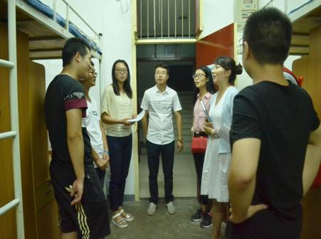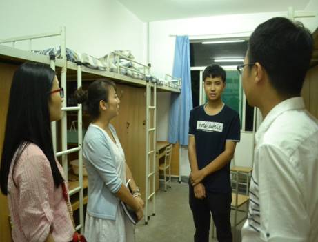 2016年9月7日20:00,Beat365官方网站党委副书记李婉丽、2016级新生辅导员程鹏、杨芝,以及2016级辅导员助理深入新生宿舍慰问走访,及时了解关注新生报道、适应情况,进行了防火、防盗、防骗安全防范教育和理想信念教育,并对新生的大学生活提出了希望和积极建议。
