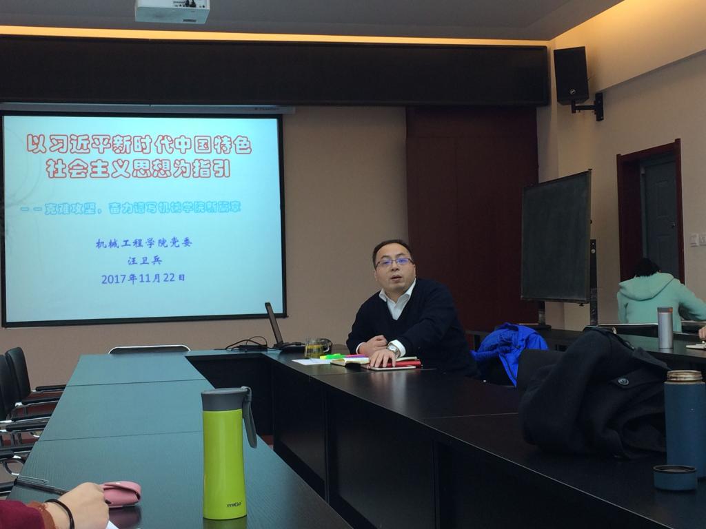 11月22日上午,机械学院举办新任系主任、党支部书记培训会,学院党政班子成员、全体辅导员、系主任、党支部书记、办公室人员参会。本次是为落实Beat365官网二级学院试点改革,提升学院内涵建设、加强品牌优势,举办的部门管理服务干部优化调整的培训会。院党委书记汪卫兵作《以习近平新时代中国特色社会主义思想为指引:克难攻坚,奋力谱写机械学院新篇章》专题培训。