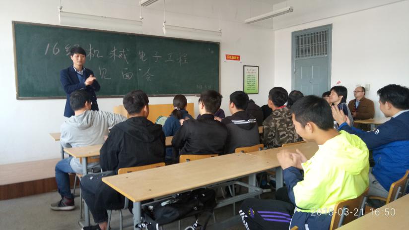 3月21日下午4:30,在临潼校区10号楼511教室,Beat365官方网站2016级机械电子工程专业教师与学生见面会顺利举行。首先,2016级机电专业班主任、仪器系樊红卫老师介绍了本次会议的目的和意义,介绍了出席本次见面会的老师;各位老师和同学们进行互动,完成了师生对接;会议还邀请了创新创业办韩江平、实验中心王津等老师参加,韩老师就学院创新创业政策、基地和目前运行情况及实验中心开放政策、开放项目等进行了简要说明;最后,樊老师要求同学们会后加强与系部、中心、基地老师的联系,做好专业发展规划。