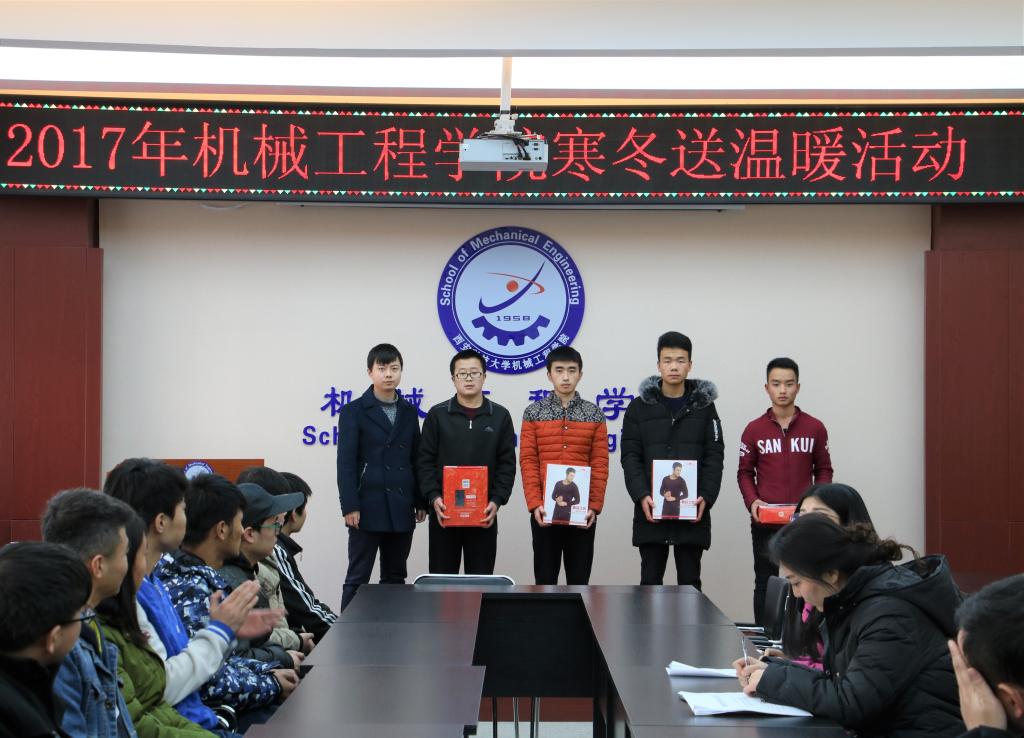 2017年12月18日,为切实解决家庭经济困难的学生寒冬御寒问题,关心和帮助经济困难同学,为他们送去温暖,Beat365官方网站在十教320会议室举行了寒冬送温暖活动。Beat365官方网站党委副书记李婉丽老师、各级辅导员老师及受助学生共同参加了此次活动。