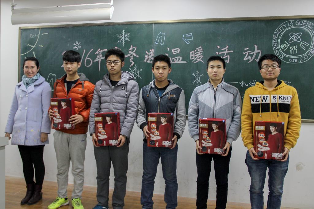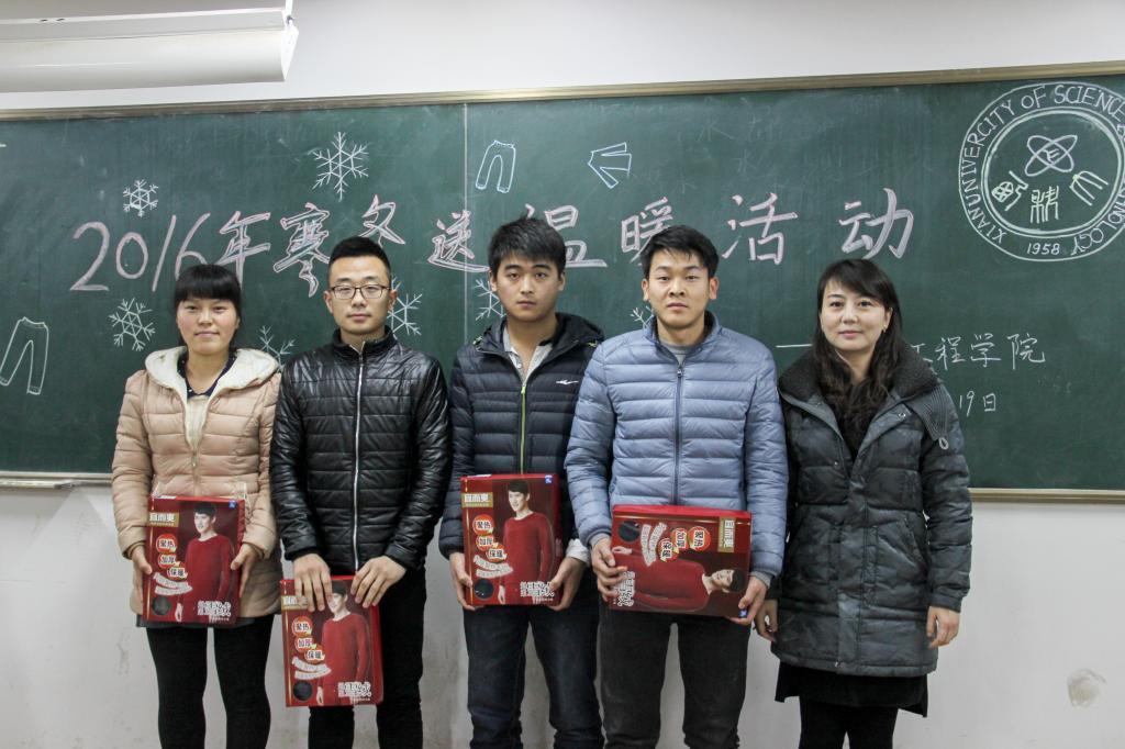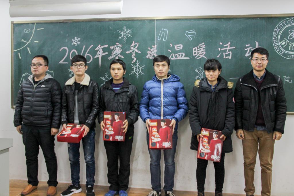 活动开始,首先由杨芝老师做活动致辞,讲述本次活动开展的目的:帮助品学兼优、家庭经济困难的同学度过一个“温暖、愉悦”的冬天,共同营造和谐、友爱的校园氛围。接着,全体老师分别为各级受助学生代表送上了保暖内衣并合影留念,随后,受助学生代表杨顺发言,表达了自己对学院的感谢,励志以后会珍惜大学时光,认真学习,用实际行动回报学校的关怀,回馈学院的关爱。最后,李婉丽老师进行总结讲话,首先对受助的学生表达了自己亲切的关怀和诚挚的慰问,之后鼓励同学们励志图存,自强不息,对同学们提出了三点要求:1.正确认识自己的情况,正确看待自己的贫困;2.相信自己的贫困只是暂时的,通过努力学习方能改变一切;3.脚踏实地,勤奋学习,回馈学院,回馈学校。