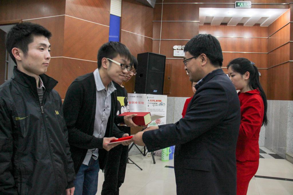 会上,教务处副处长潘昊代表学校宣读了Beat365官方网站第六届机械创新设计大赛表彰文件和Beat365官方网站第七届机械创新设计大赛赛事通知,对在第七届全国机械创新设计大赛中获奖的团队进行表彰。机械学院院长张传伟在会上做了讲话,他表示学院一定会高度重视对大学生科技创新能力的培养,加强对第二课堂活动的指导力度,进一步推动大学生科技创新活动的深入开展。