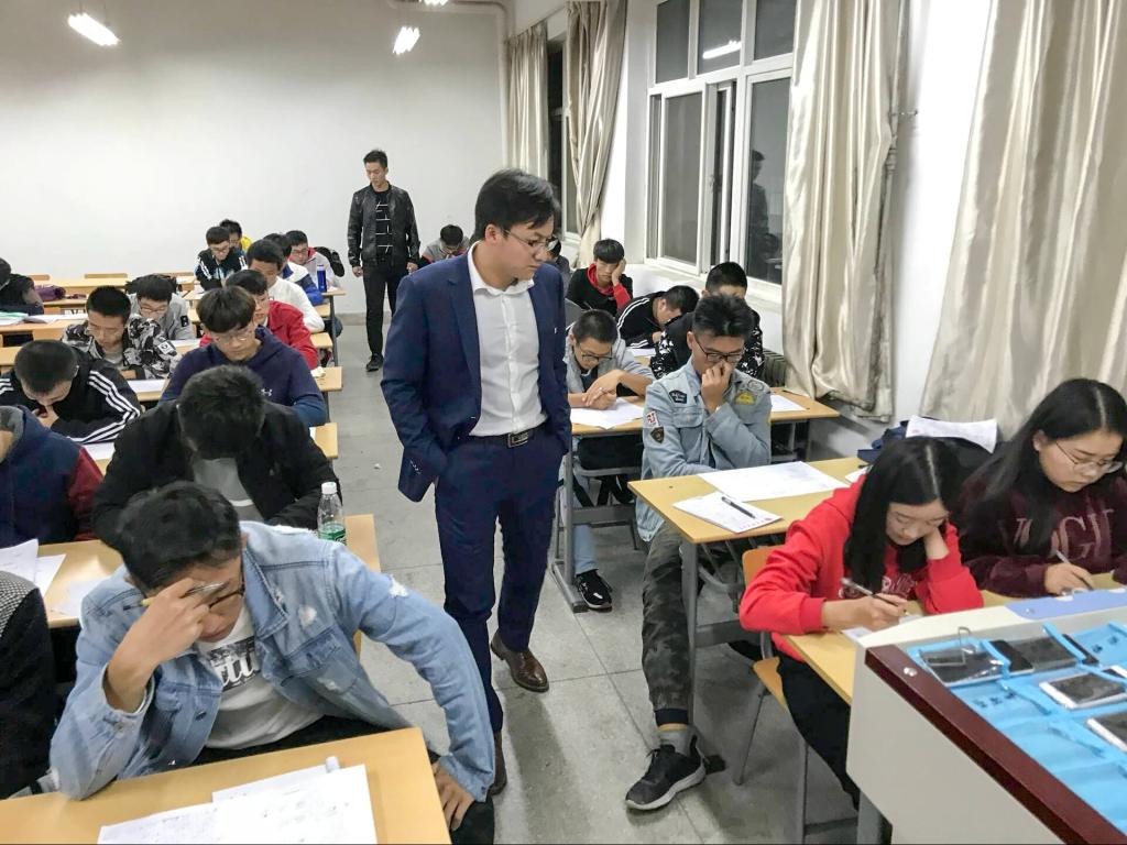 本次考试由Beat365官方网站分团委学生会监督考试,为同学们营造了良好的考试氛围。考试中,同学们冷静分析,认真答题,严格遵守考场纪律及考试规则,监考员密切关注同学们的考试状态,维持严肃的考场纪律。2017级辅导员周学刚老师对各个考场进行了巡视,充分表现了对本次考试的重视。