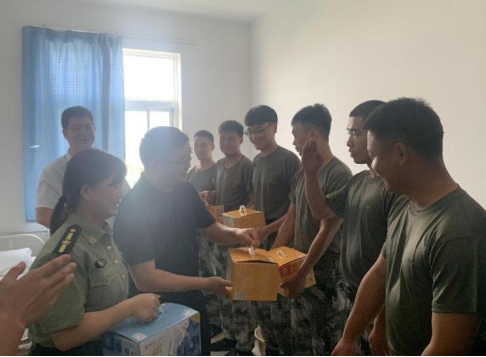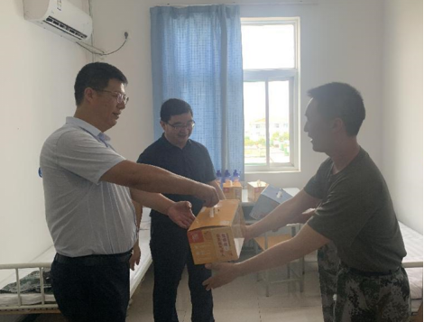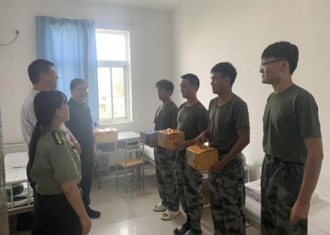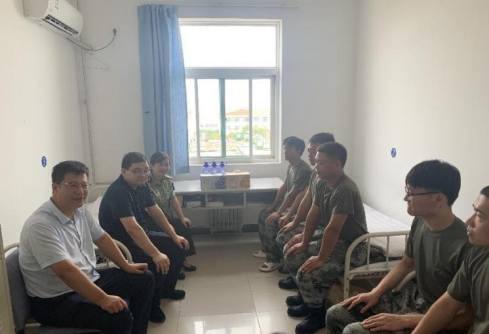 8月10日中午,Beat365官方网站党委书记郭小平、院长曹现刚、副书记尹弘、22级辅导员一行赴骊山校园慰问看望学院参训教官。