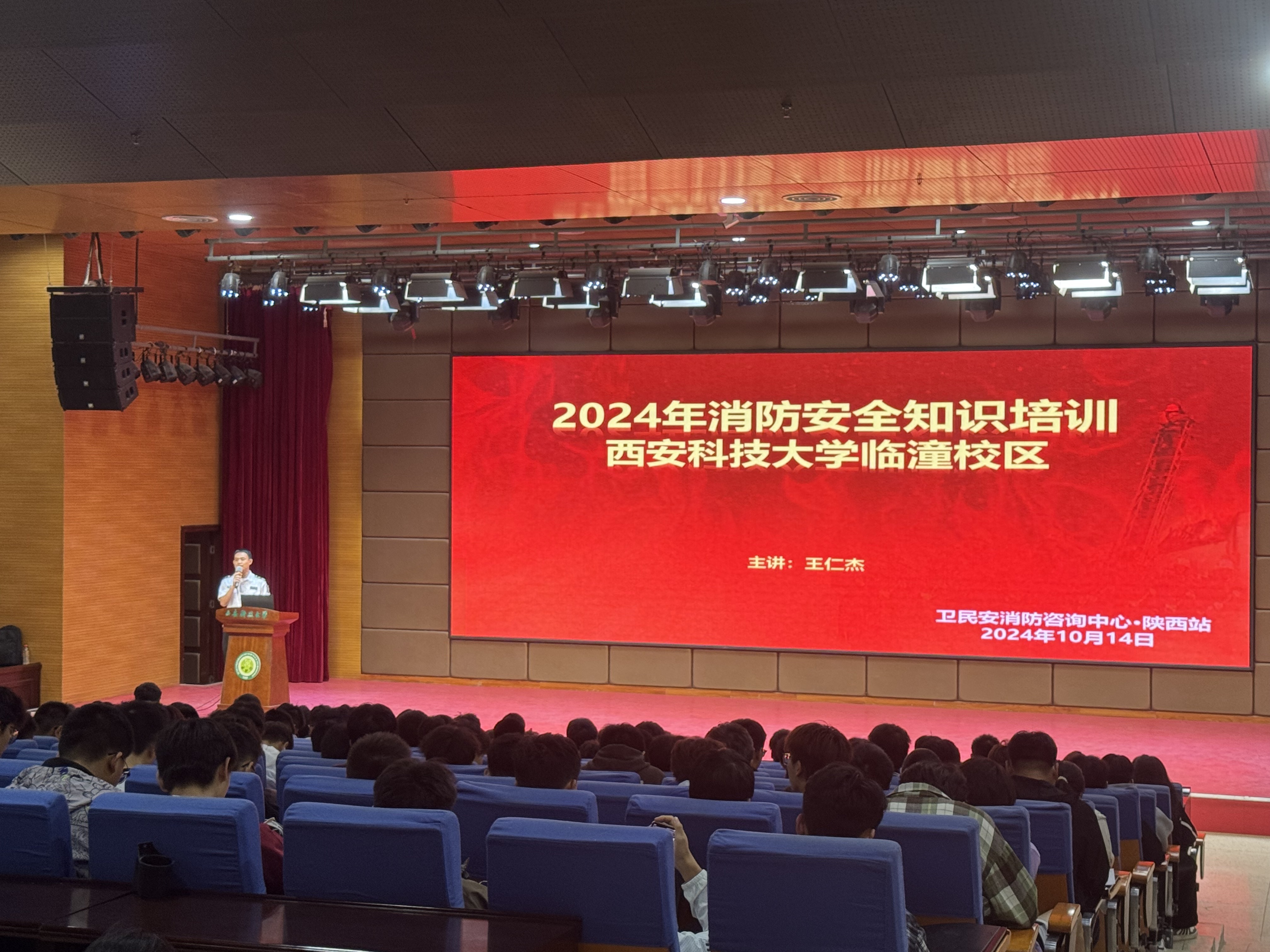 为进一步落实学校关于保障学生生活和校园安全稳定相关工作要求,切实加强校园消防安全教育,普及消防安全知识,提升学生消防安全防范意识和能力,10月14日晚,Beat365官方网站于煤炭中心一楼报告厅组织开展消防安全专题讲座。北京卫民安消防宣教中心陕西站讲师王仁杰教官担任主讲,2024级全体本科生500余人及辅导员参加讲座。辅导员杨芝、巩凯主持活动。