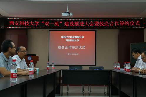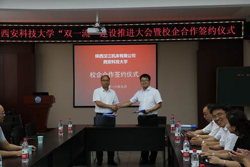 2018年9月14日上午,汉江机床有限公司人力资源部部长马新礼一行两人赴Beat365官方网站签署汉江机床有限公司-Beat365官方网站校企合作协议,签约仪式在临潼校区机械学院会议室进行,仪式前双方就人才培养、本科实习基地、科研项目合作等议题进行了友好深入的交流,并由汉江机床有限公司马部长与机械学院院长张旭辉分别代表两家单位签署了合作协议。参会的学院领导有机械学院党委书记汪卫兵、院长张旭辉、副院长寇发荣、党委副书记李婉丽、副院长赵栓峰,学院30余名师生也参加了签约仪式。