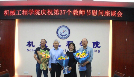 座谈会上,张旭辉院长简要介绍了与会优秀教师近年来个人在科研及学科建设方面取得的突出成就。邓军副校长高度肯定了机械学院近年来建设发展取得的成就,代表学校对机械学院优秀教师团队多年来为学校发展做出的突出贡献致谢,并向与会教师代表赠送了鲜花,嘱托与会老师劳逸结合,注重健康,保持良好的精神面貌;邓军副校长代表学校表达了对学院全体教师的节日祝贺,并号召大家向优秀教师学习,继承和发扬“励志图存,自强不息”的学校精神,凝心聚力,共同为学校建设发展做出新的贡献。